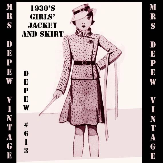 Vintage Sewing Pattern 1930 S French Girls Jacket And Skirt In Any Size Depew 613 Instant Download